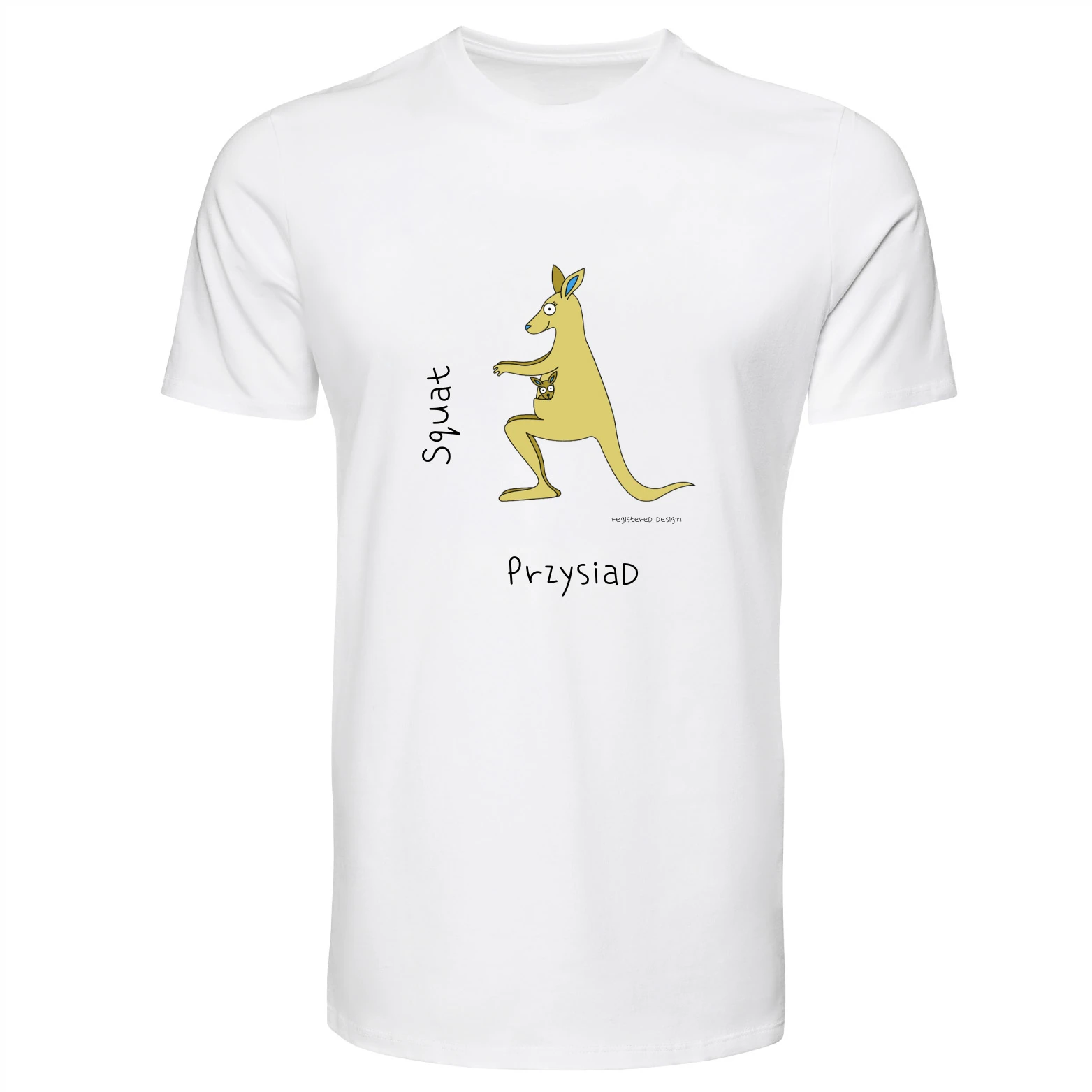 Koszulka z kangurem, który przypomina o wzorcu prawidłowego przysiadu. Zaprojektowana z myślą o maksymalnym komforcie, pozwala skupić się na ruchu, a nie na dyskomforcie.